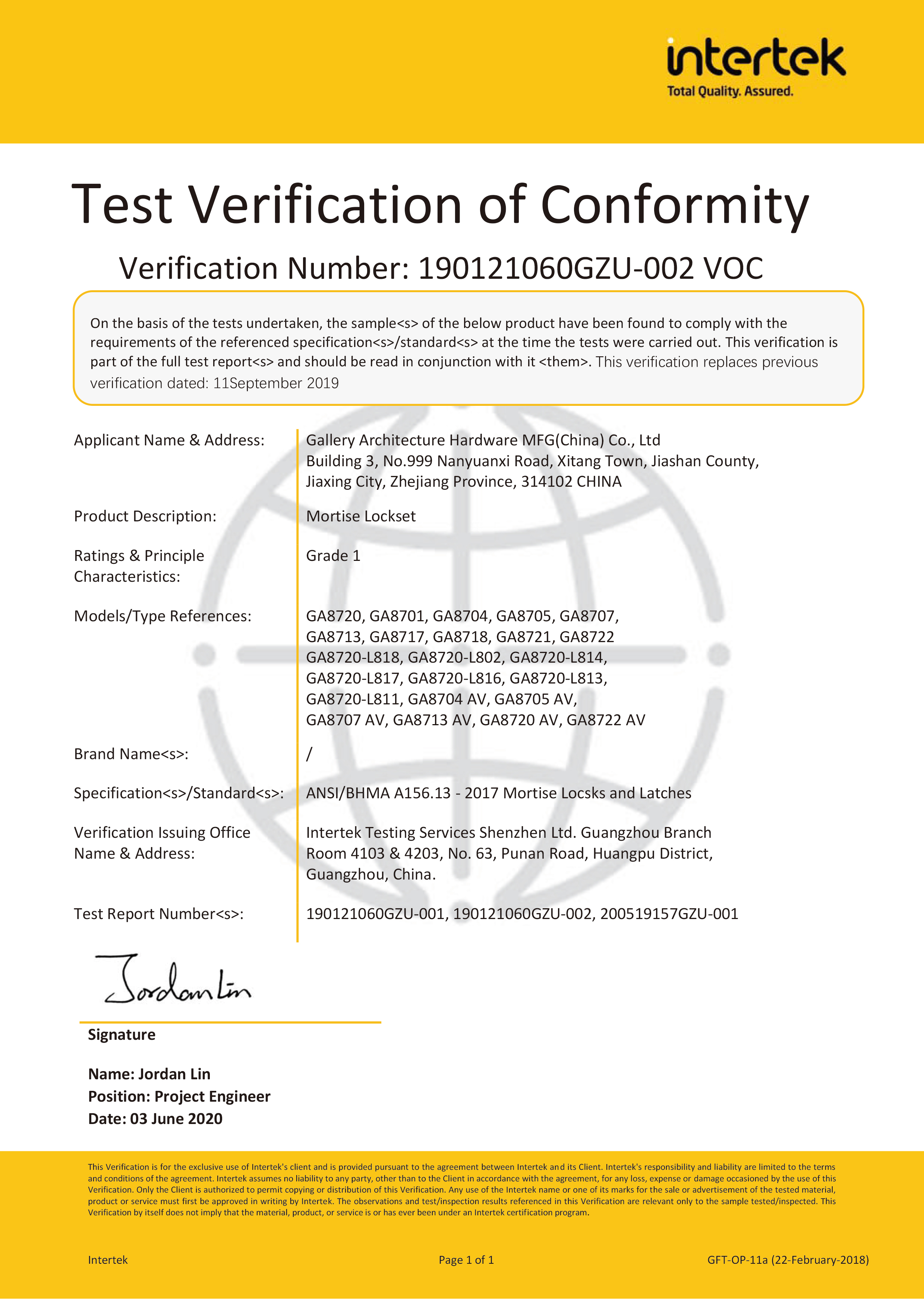 浙江堅迪五金制造有限公司始建于 1995 年。自 2003 開始,公司致力于高標準商業鎖的研發工作,并于 2006 及 2007 年,8700 插芯鎖系列獲得美國國家標準 ANSI A 156.13-2005 一級、ANSI A 156.2-2003 二級和美國 UL 10C3 小時防火測試認證。自 1998 年以來,公司不斷提升產品和客戶服務品質,并獲得了 ISO 9001 的認證。